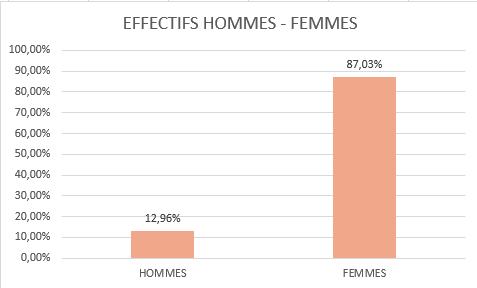 Cette situation reflète une tendance plus large observée dans le secteur médico-social, où le personnel masculin demeure largement minoritaire.